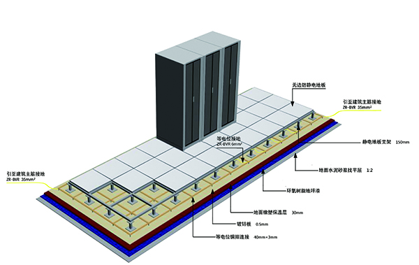 機房作為數據的處理和樞紐中心,成為信息系統中重點保護對象,而機房設備多,電源線、通訊線、數據線互相交叉,又極易遭受感應雷擊,所以機房防雷問題是系統集成中必須重點考慮的問題,為確保各智能化系統穩定可靠運行及保障機房有良好的工作環境,設計須考慮做到技術先鋒、經濟合理、安全適用。除滿足《機房防雷設計規范》(GB50174-93)與《建筑物防雷設計規范》(GB50057-94),《建筑物電子信息系統防雷技術規范》(GB50343-2004)要求的同時,絕緣體的靜電電位不應大于1kv,機房內的導體必須與地面作可靠的聯接,不得有對地絕緣的孤立導體,接地電阻不應大于4Ω,同時還應符合現行國家有關標準規范的規定。